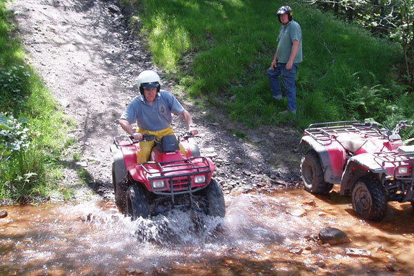 Our staff ensure you will have a great day. These are 250cc quad bike machines which guarantee an action packed experience. You are escorted by our instructors into the great outdoors with magnificent views out over the Brecon Beacons. Not restricted to a single track you ride through woodland, over mountain and rough terrain with water thrown in for good measure taking in the challenges en route.